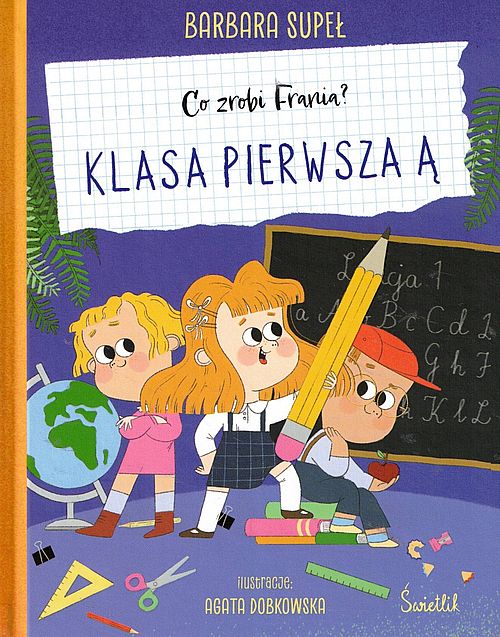 Frania idzie do szkoły! Poznajcie Franię – bystrą, rezolutną i pełną poczucia humoru siedmiolatkę, która właśnie rozpoczyna nowy rozdział w swoim życiu: naukę w pierwszej klasie! Frania zamienia przedszkole na szkołę, starszy brat oddaje jej górne łóżko, a w jej tornistrze lądują książki, zeszyty i przybory. „Klasa pierwsza Ą” to kontynuacja bestsellerowej serii „Co zrobi Frania?” autorstwa Barbary Supeł. Cykl z Franią w roli głównej pokochały nie tylko dzieci, lecz także ich opiekunowie. To historie, które mądrze łączą rodzinne emocje z dużą dawką humoru. W tej części Frania podejmie wiele ważnych decyzji: jakie wybrać buty, co zrobić z pomazanym zeszytem, jak pomóc nowej koleżance i jak poradzić sobie z tremą podczas akademii z okazji rozpoczęcia roku szkolnego. Każde opowiadanie uzupełnia część interaktywna, w której dziecko może odgadnąć, co wydarzy się dalej. Na małego czytelnika czeka kilka odpowiedzi do wyboru i rozwiązanie zagadki! Dodatkowo na końcu każdej historii znajduje się krótkie podsumowanie Frani o tym, czego się z niej nauczyła i dowiedziała. [nota wydawcy]