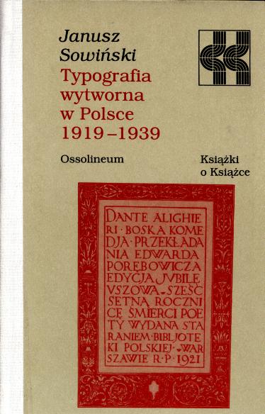 Typografia wytworna w Polsce 1919-1939 / Janusz Sowiński. - Wrocław : "Ossolineum", 1995. - 253, [3] strony : faksymilia, fotografie, ilustracje ; 20 cm.