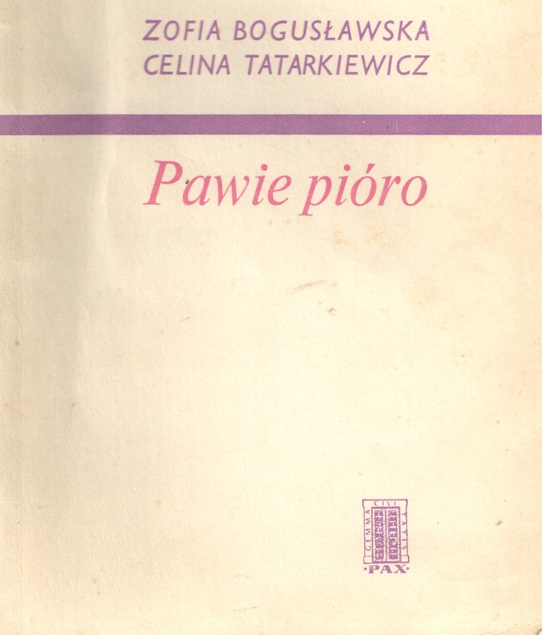 Pawie pióro / Zofia Bogusławska, Celina Tatarkiewicz ; ilustracje Stanisława Saloni. - Warszawa : "Pax", 1972. - 154, [2] strony, 6 stron tablic : ilustracje ; 18 cm.